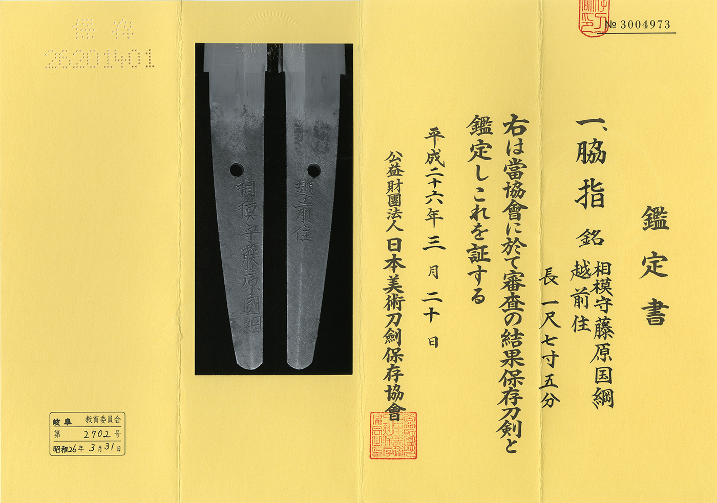 Signature : Sagami Kami Fujiwara Kunitsuna.