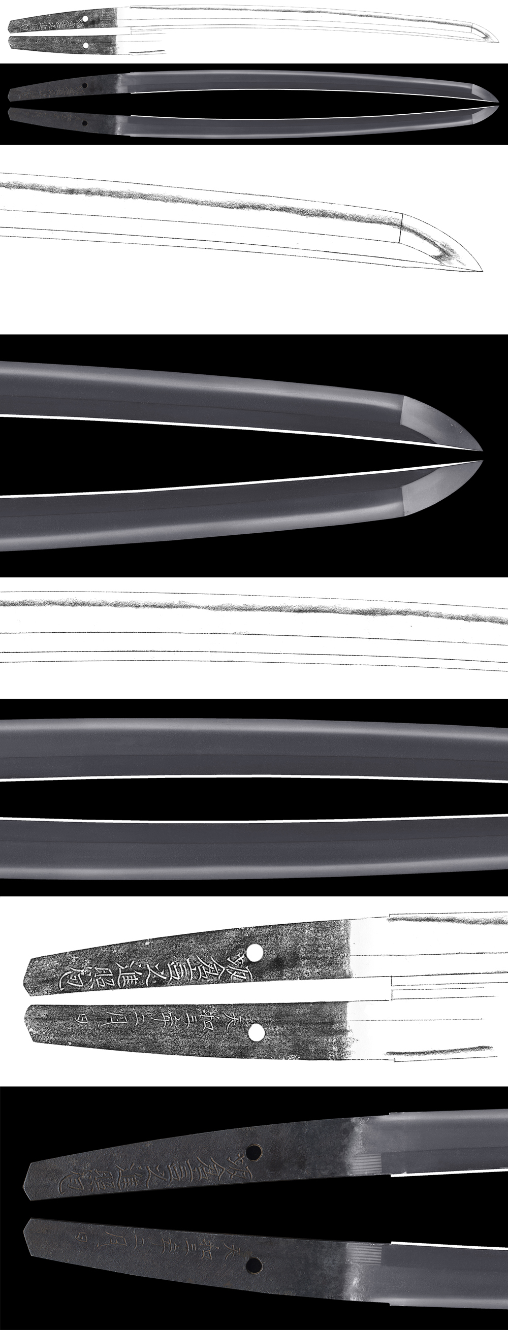 Shape : The blade is wide and thick with small sori and longer kissaki.