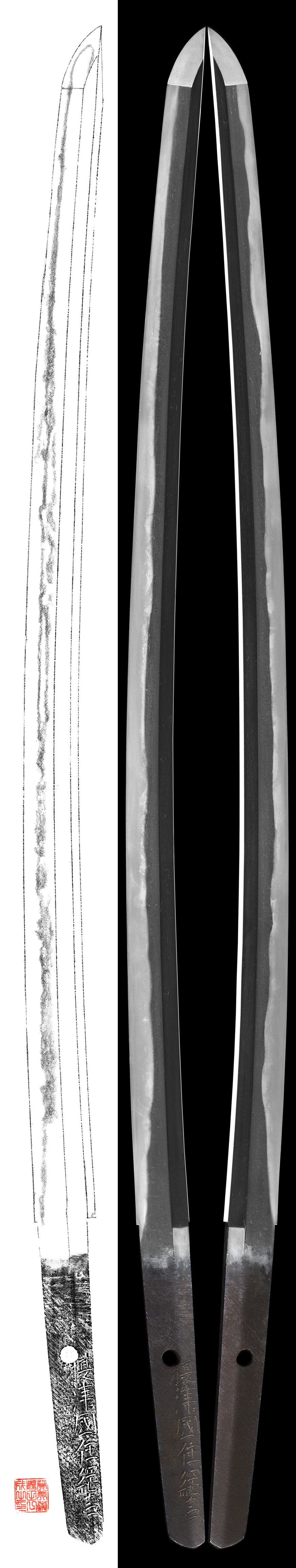 Hamon : Niedeki suguha based gunome midare hitatsura style.