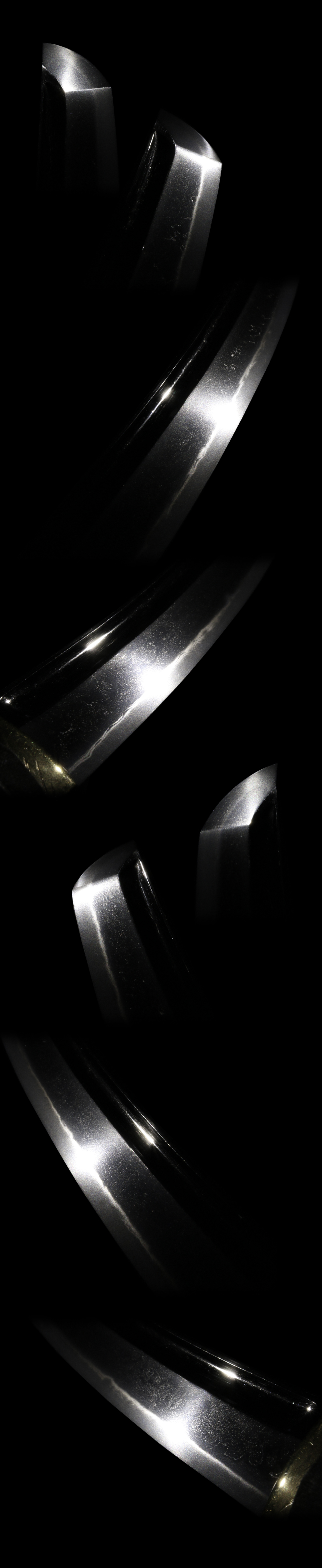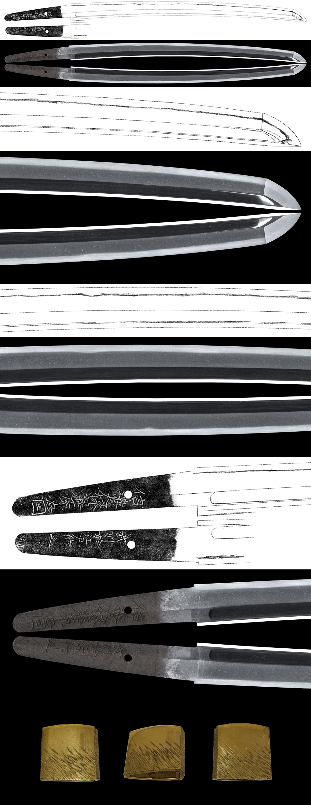 Shape : The blade is rather wide and thick with deep sori and long Kissaki. On both sides of the blade, Bo-hi engraved.