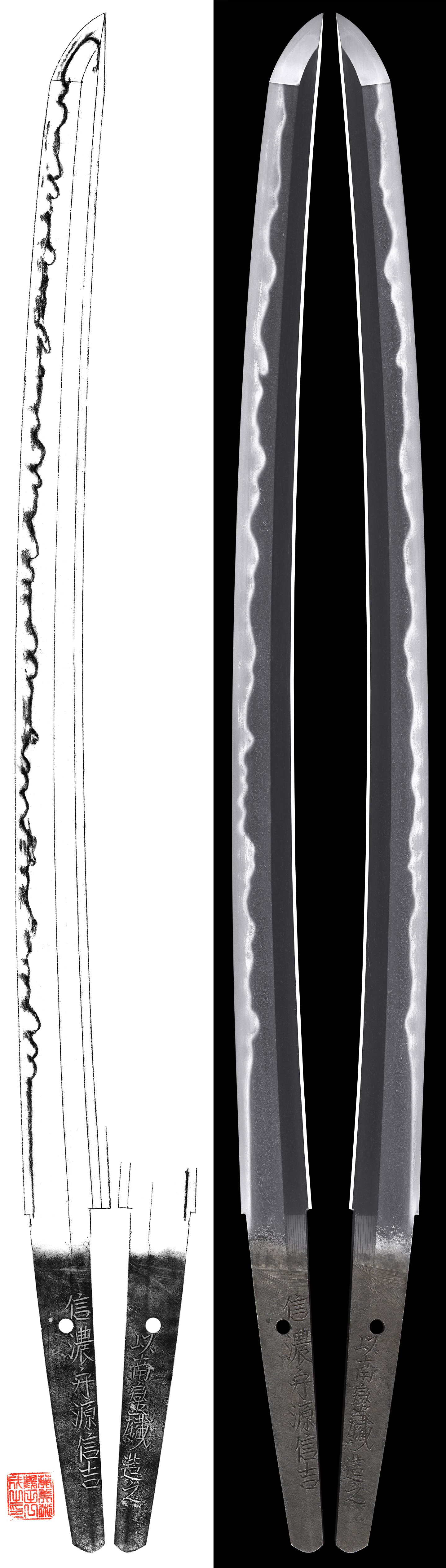 Shape : The blade is wide and thick with small sori like Kanbun style.
