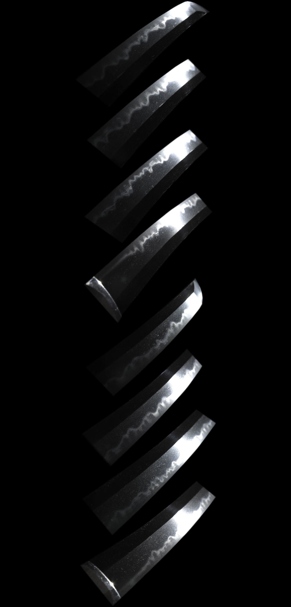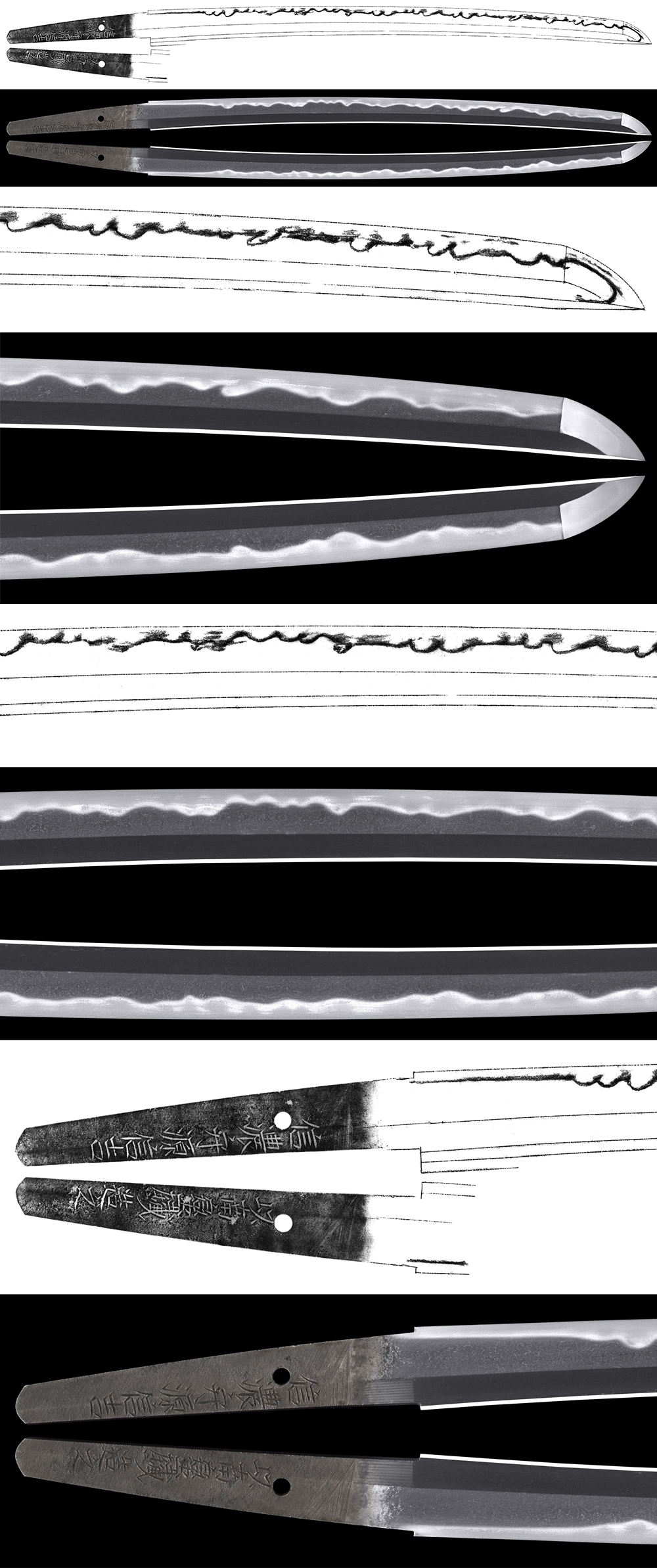 Hamon : Niedeki gunome midair with ash, work and sunagashi, small kinsuji work.