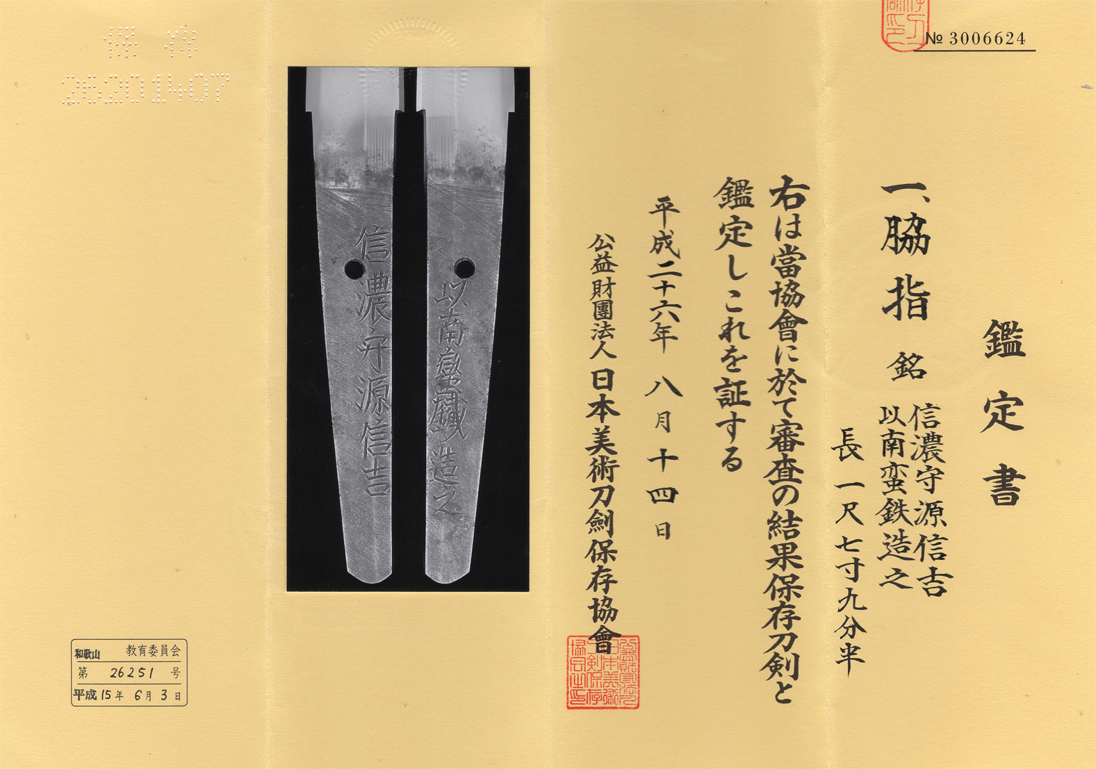 Aoi Art estimation paper : whole Oshigata.