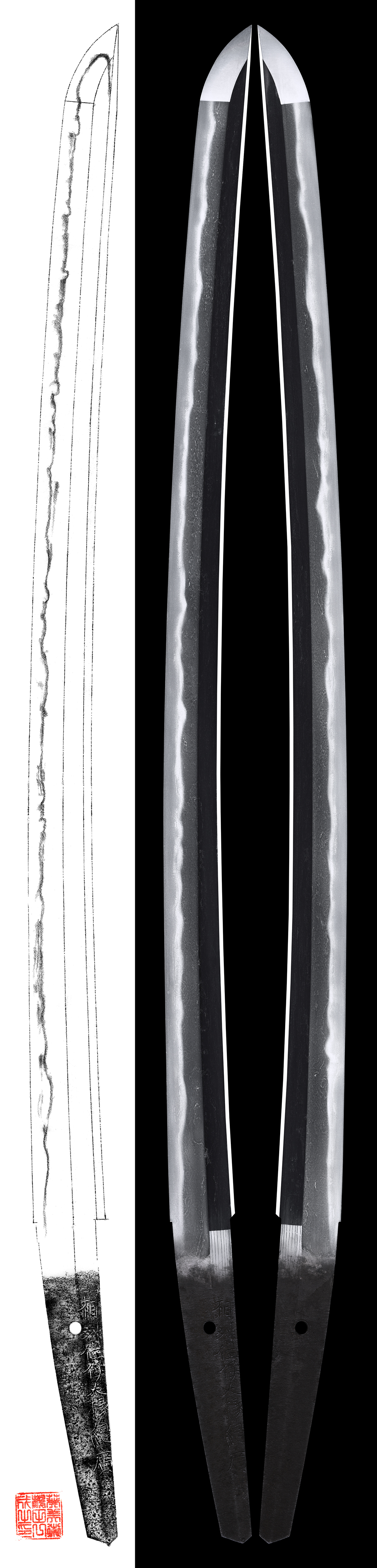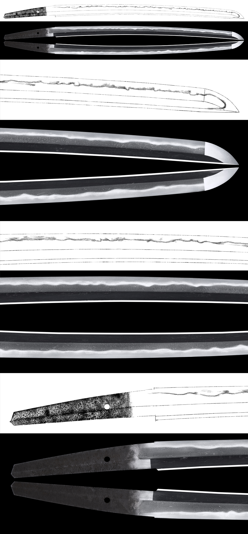 Hamon : Niedeki suguha based and gunome midair mixed with sunagashi and Kinsuji work. Boshi is round shape.