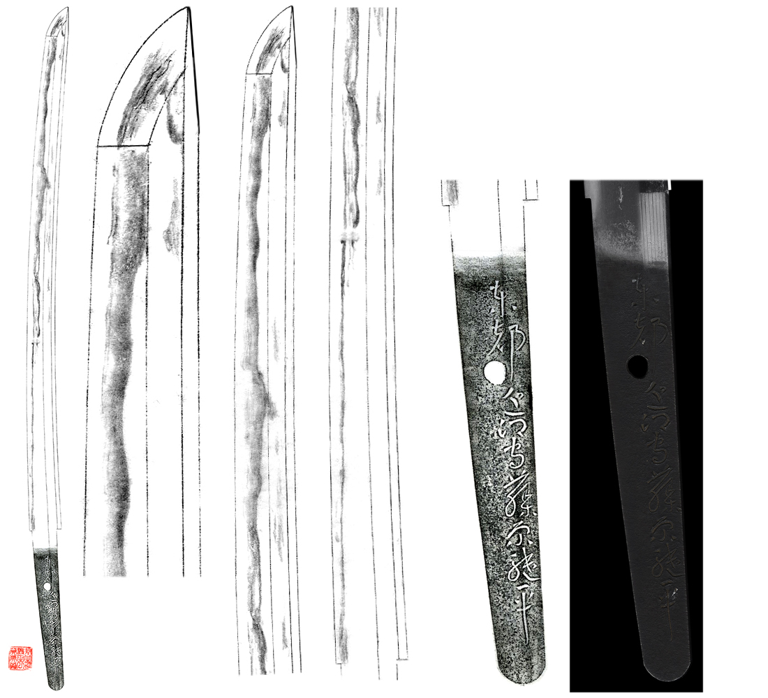 Saya : Black roiro saya.. There are sparkles of Aogaichirashi(mother of pearl) at the top part.