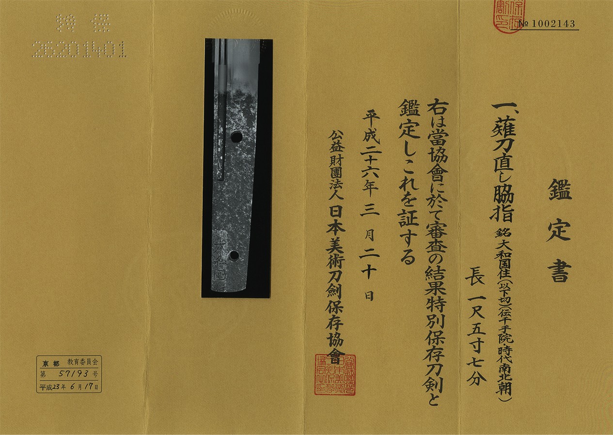 Signature : Yamato no koku Ju(Den Senjyuin, Nanbokucho Period)