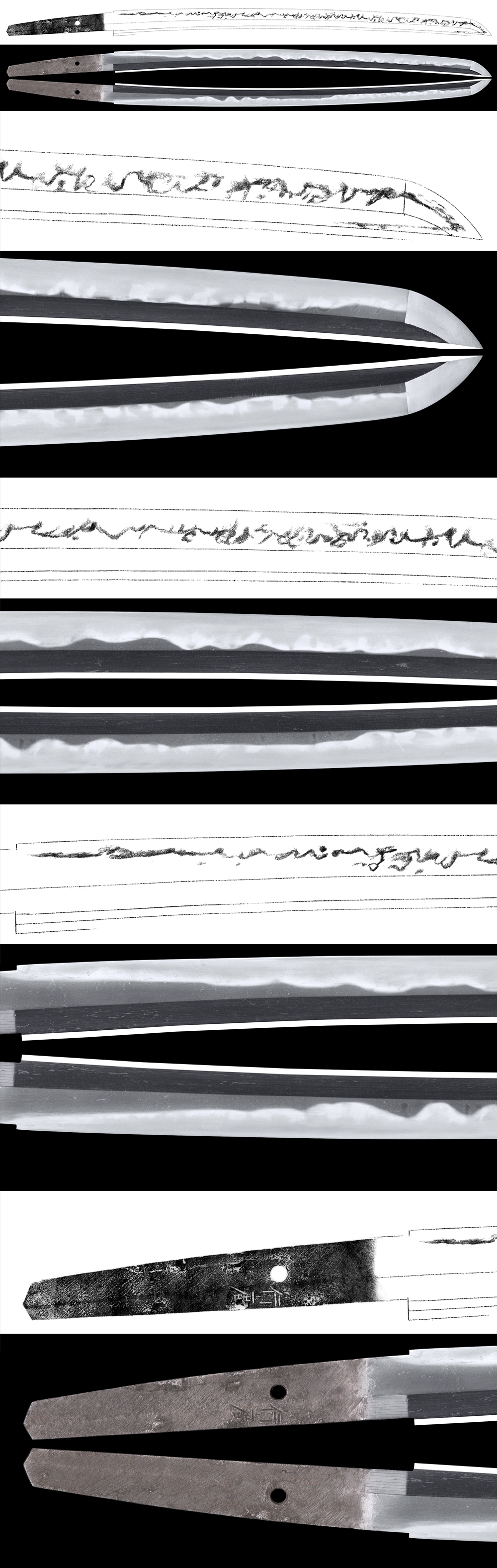 I think this blade should not pass NBTHK Hozon paper with this signature. But there are still possibility for the swordsmith with bad handwriting existed so we have a little hesitation for removing signature to make it Mumei. Of course the blade should pass NBTHK Hozon Shinsa if the signature was removed. Though we don’t have any idea why such poor signature had to be engraved on this blade having nice Hamon and Jigane.