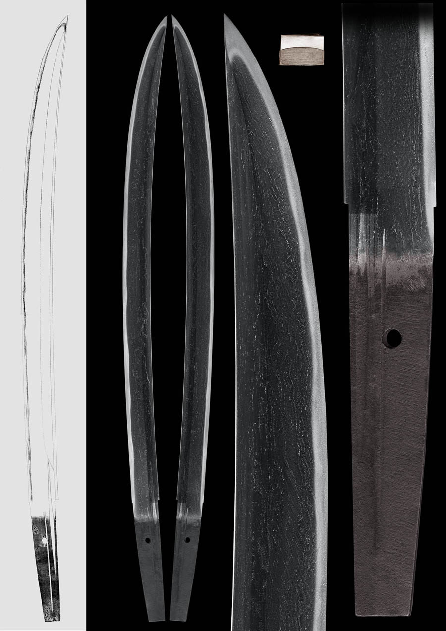 Shape : A naginata-naoshi wakizashi.Naginata-hi is carved on the both sides of the blade.
