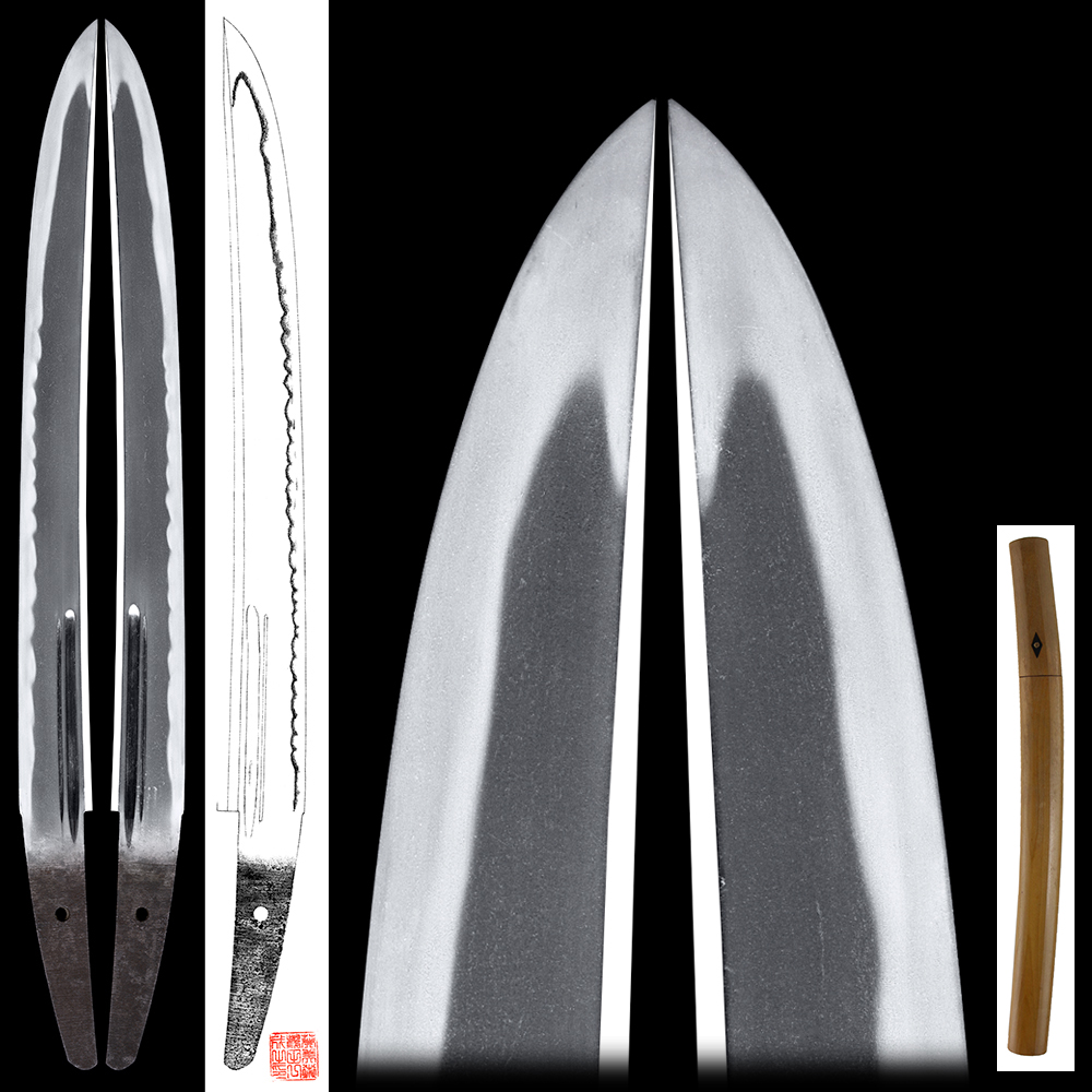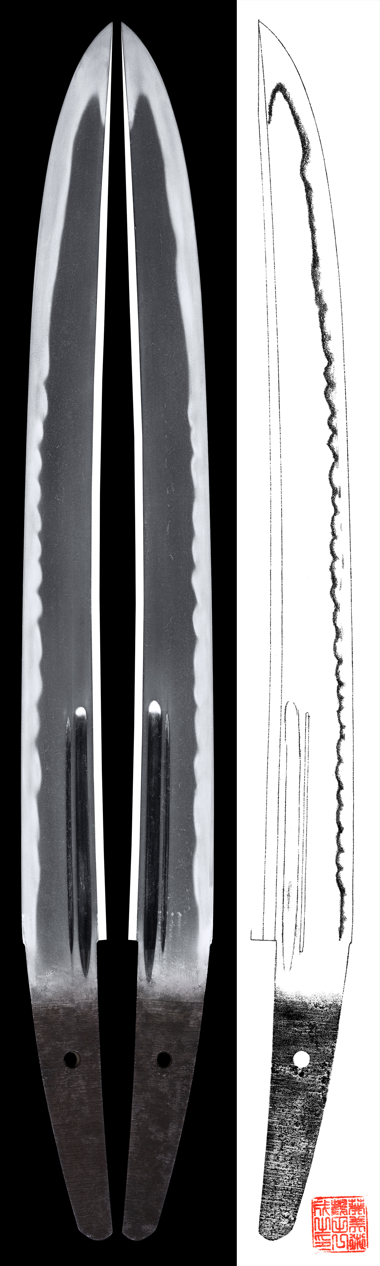 Hamon: Regular small gunome-midare. It turns to gentle pattern on the upper part of the blade.