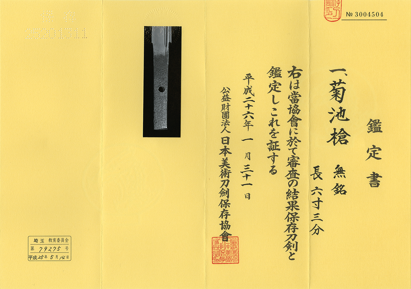 Signature : Mumei(unsigned) Kikuchi Yari