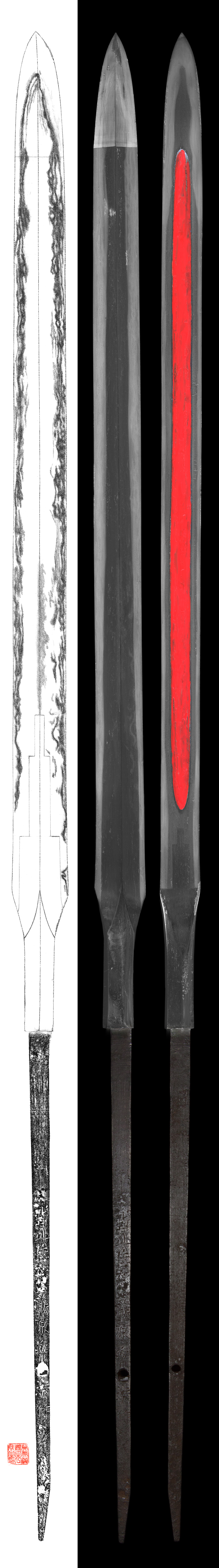 Special feature : This piece is rather long kerakubi style. It is a good shape katana and the signature seems to be good.