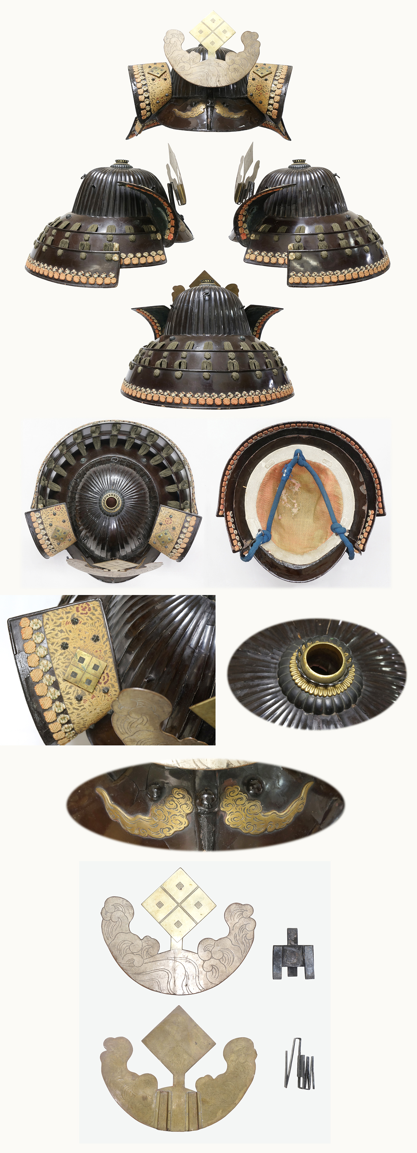 Kabuto : 62 plates Hoshi kabuto Mei (signature) :The signatue is engraved as Saotome Iechika Jidai(era) : Edo period (Mabisashi and Hachimanza are not Edo period) Fukikaeshi : family crest. Shikoro : 2 iron plates Mabisashi : Iron. Special feature ...